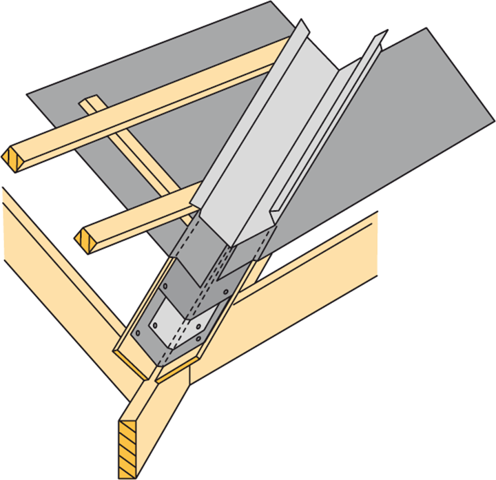 Vinkelrännan skall ha en stabil bottning av trä samt för fixering ett underbeslag av plåt. Underbeslaget förses med en kondensskyddande remsa (ex T-Roof Multi Strip). En remsa av underlagstaket T-Diff Pro, en mittvåd, monteras ovan underbeslaget som täcker hela bredden av bottningen och underlaget samt hela dess längd.