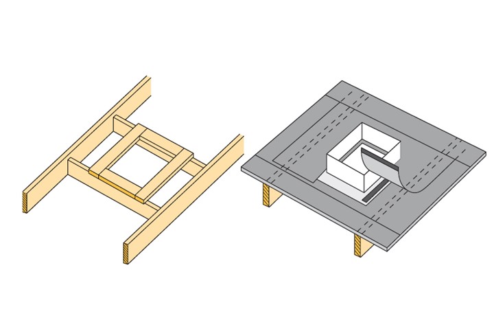 Genomföringar som ventilationskanaler eller skorstenar kräver först avväxling mellan takbjälkarna som bottning och för stabilisering.