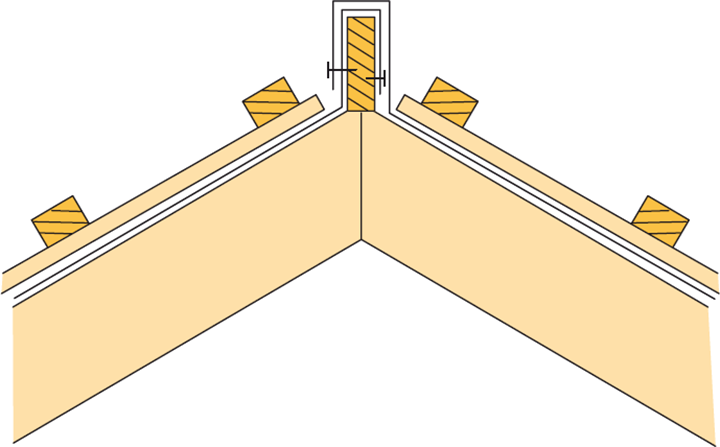 Nocklösning ska vara tät (ej ventilerad) och överlappande skarvning mellan ena taksidans vådflik och den andra.