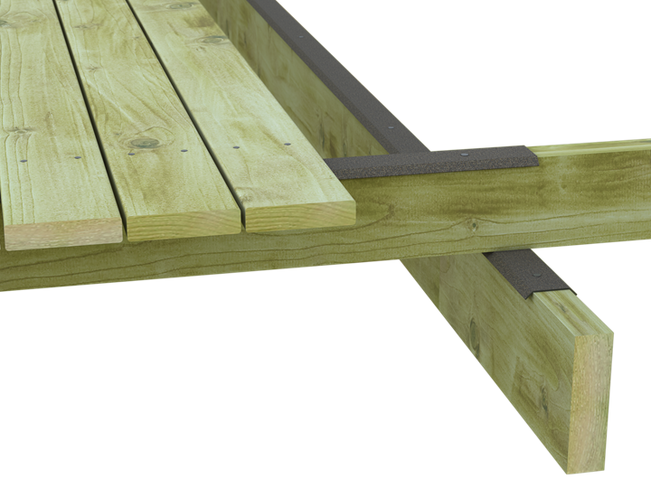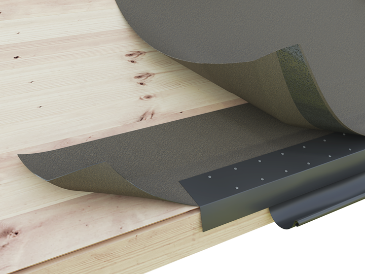 Remsan skall täcka bjälkens överkant samt minst 10 mm på var sida. Utskjutande kanter viks neråt för att skapa en droppkant. Remsan kläms mellan trall och bjälke alternativt bjälke och bärlina.