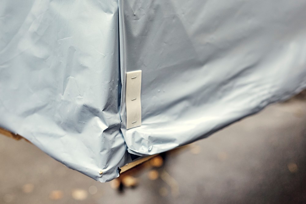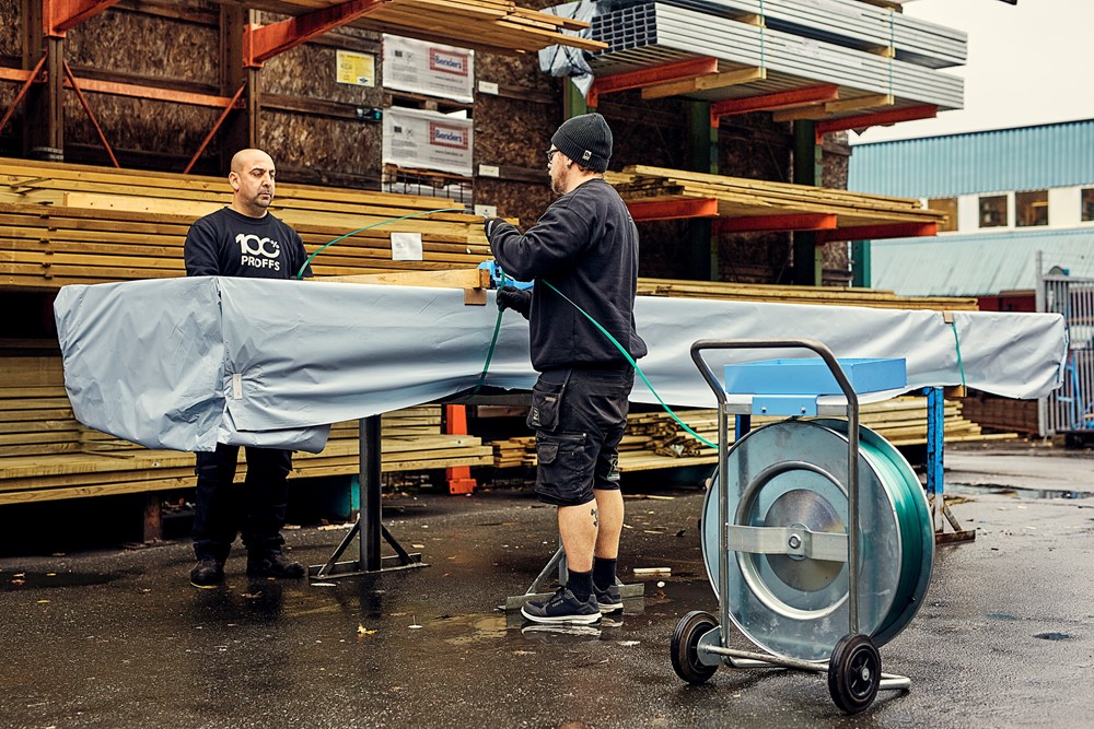 Håll virkespaketet torrt och rent vid förvaring utomhus. Lösningen baseras på en transparent, smidig och stabil folie.