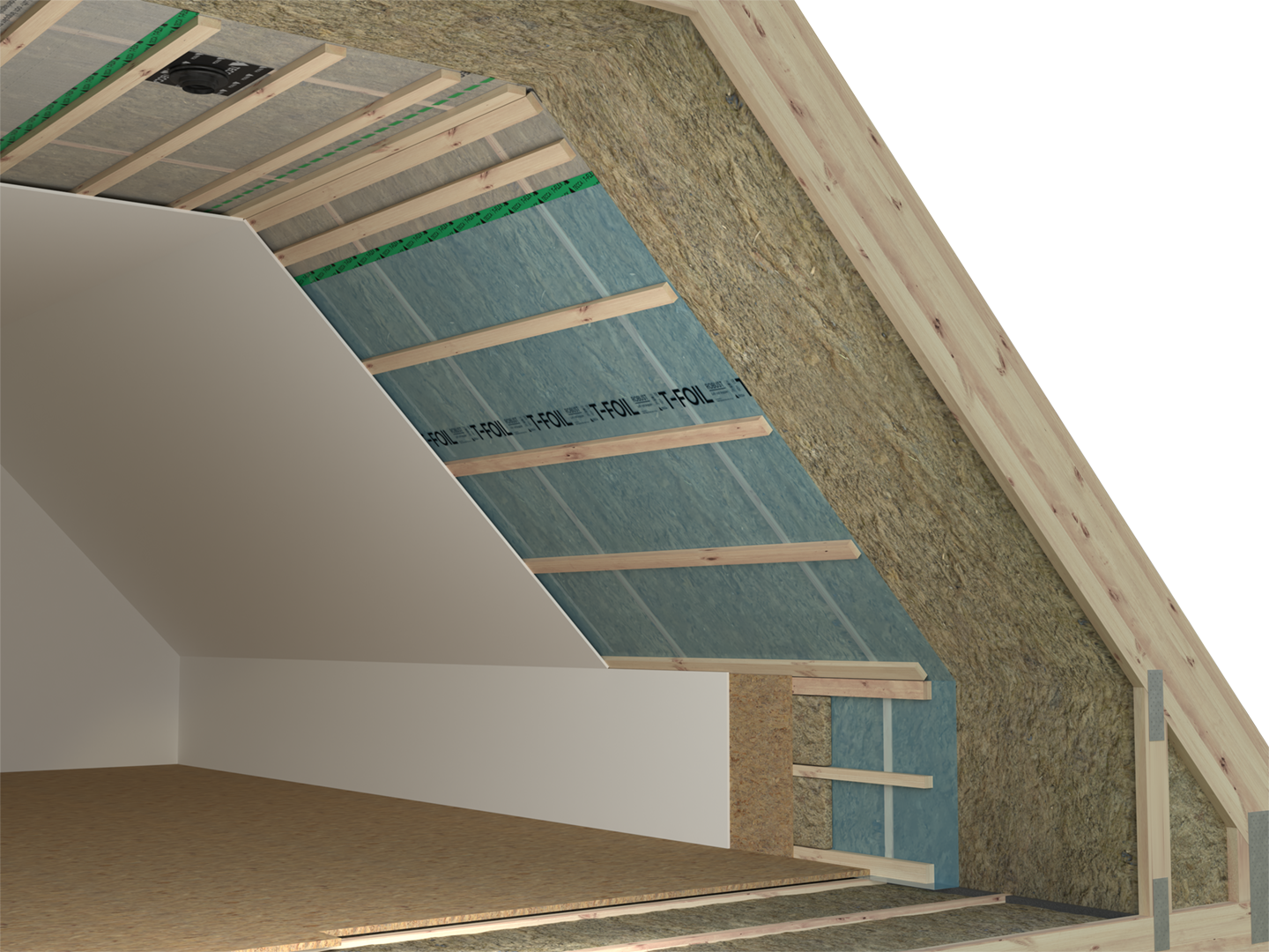 Ett modernt system som bildar husets inre klimatskärm. Systemet förhindrar fuktig och varm luft från att tränga ut i yttertakets isolering och konstruktion.