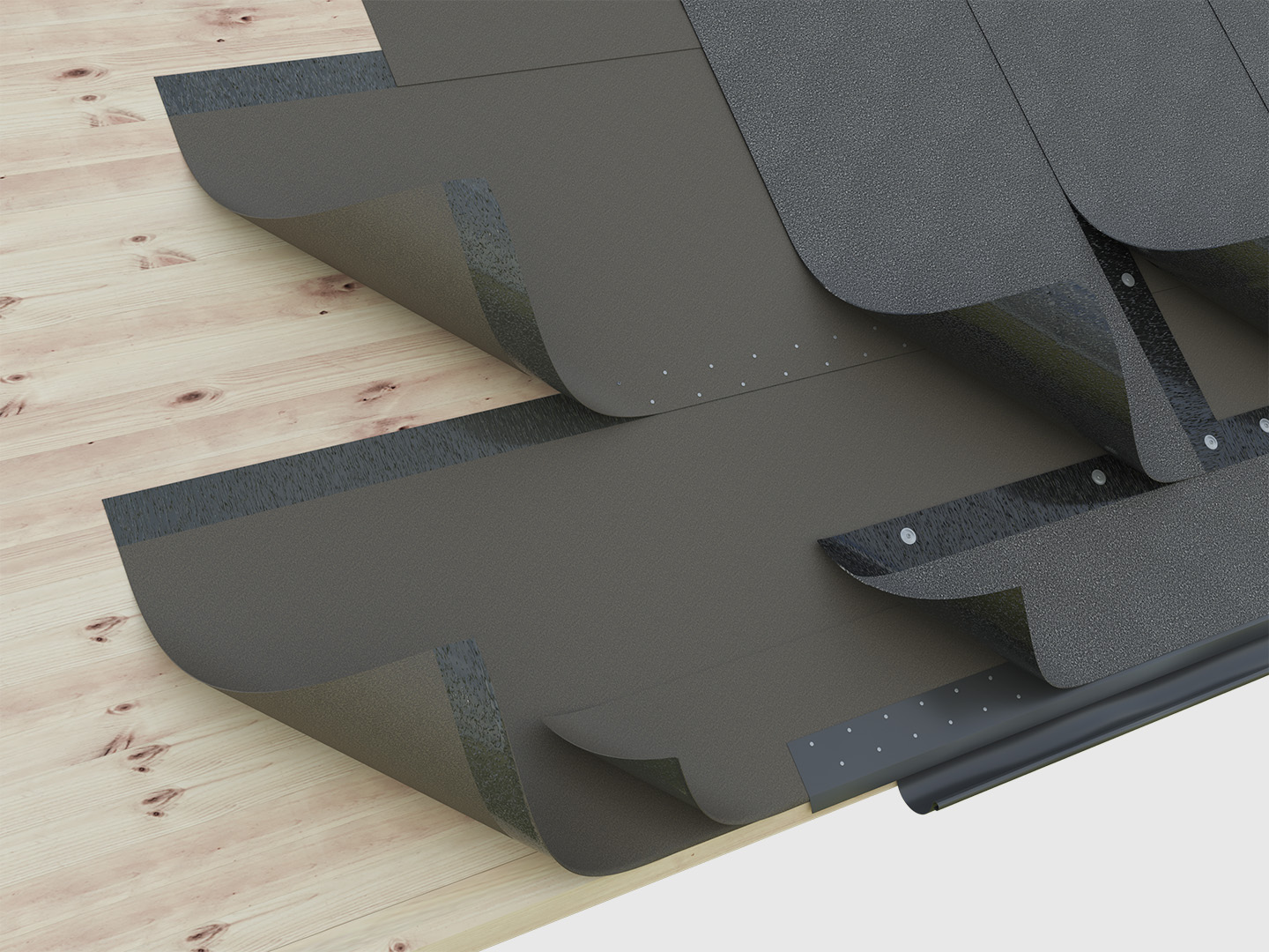 Ett traditionellt system med flera sorters underlagspapp (byggpapp) med olika egenskaper, under tätskikt utförda med heta arbeten (svetsade). Använd produktguide för takunderlag för att hitta rätt produkt till ditt bygge. Produktnamn är T-Roof YAM 2000, T-Roof YAP 2200 och T-Roof YEP 2500.