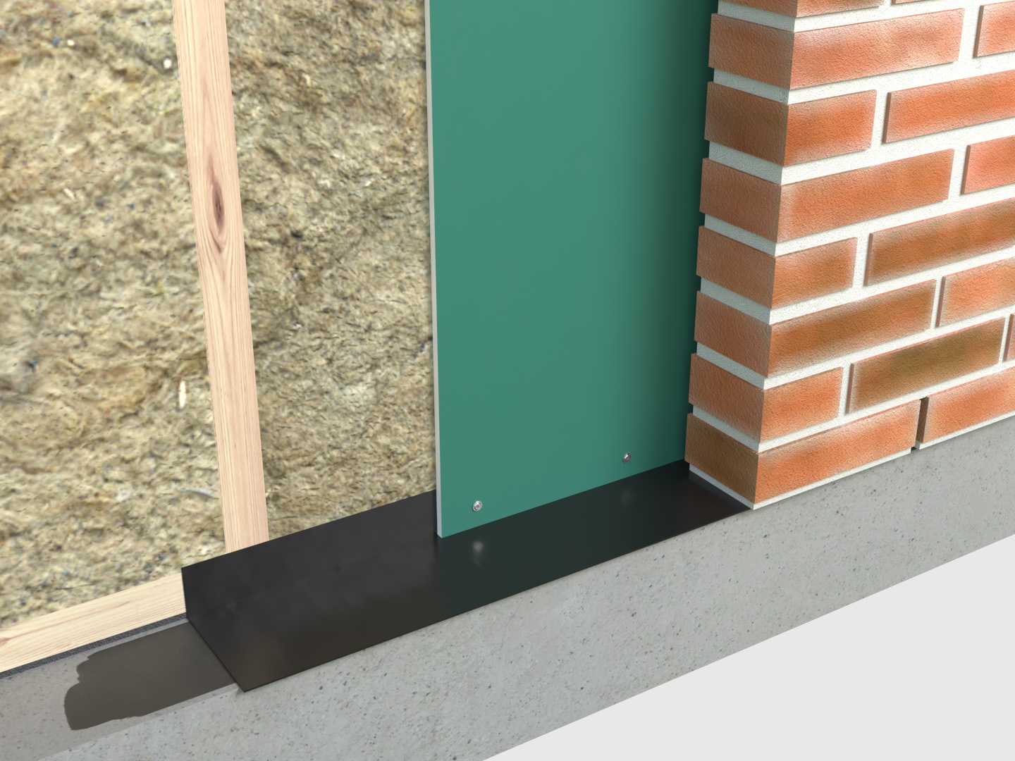 Systemet är en del av husets yttre klimatskärm och leder bort eventuellt vatten bakom en murad fasad, och förhindrar samtidigt fukt att tränga in i väggens syll. Den lufttätar också ytterväggen på denna del av konstruktionen.
