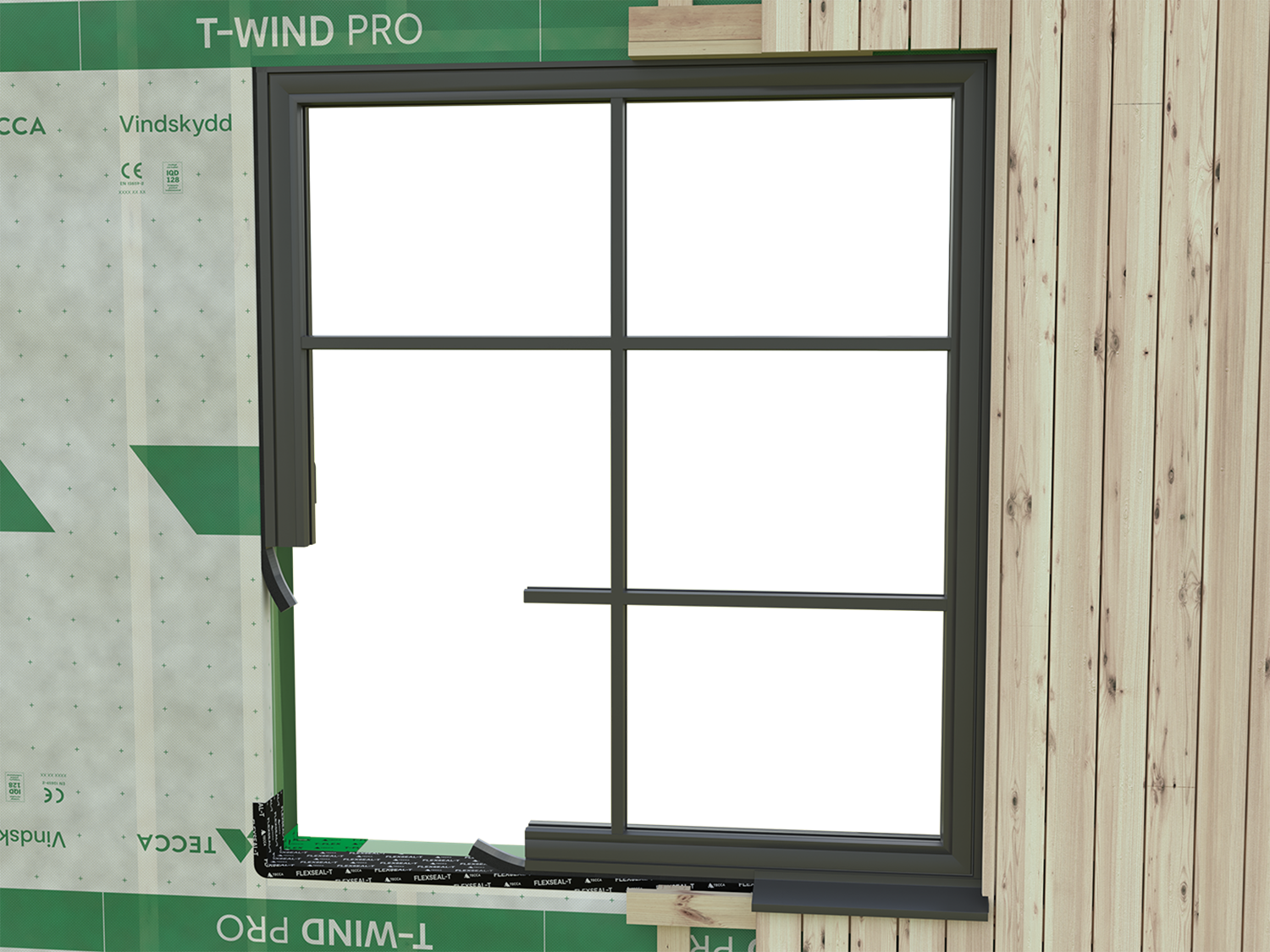 Med en diffusionsöppen tejp som Airtight-T kan du tejpa runt hela fönstret och få en väderskyddad lösning direkt.