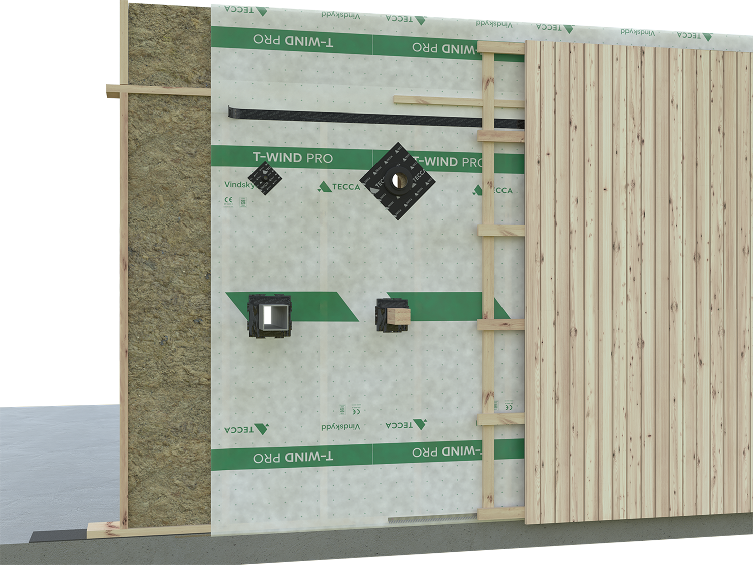 T-Wind är vindskydd som utgör den yttre klimatskärmen på utsidan av isoleringen i ytterväggskonstruktioner.