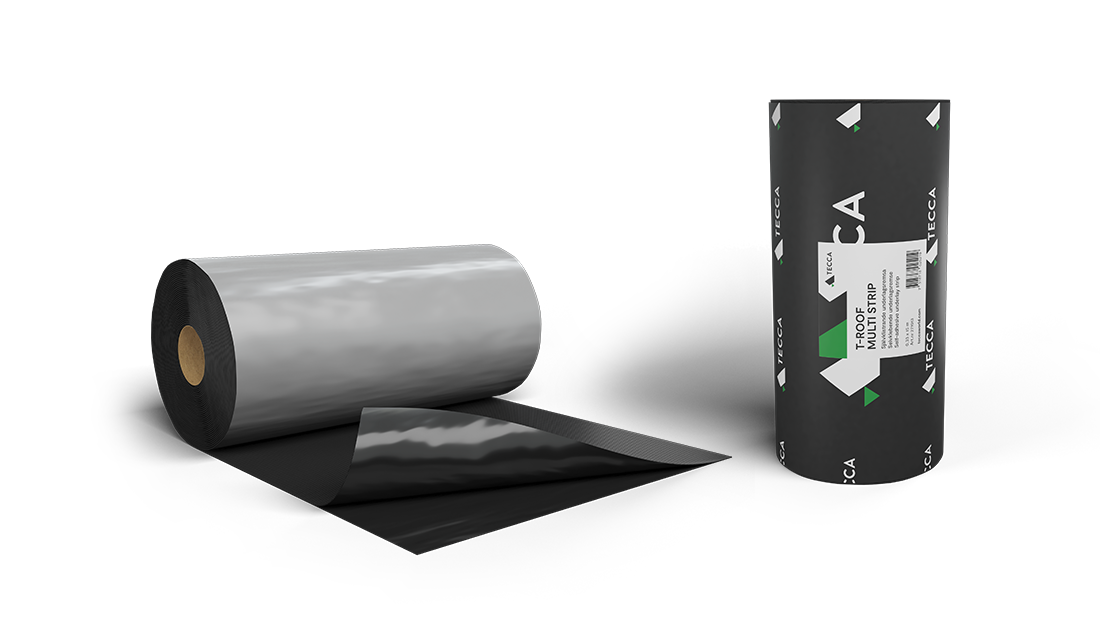 Upptäck vårt utökade sortiment av remsor till underlagstak. Nu finns T-Roof Multi Strip i bredden 500 mm, vilket medför 2 nya användningsområden. Förutom att produkten används som takfotremsa eller kondens- och fuktskydd för alla tak under plåtdetaljer kan den nu även användas som nockremsa och ränndalsvåd i vinkelränna. Den nya bredare remsan kan även vara till fördel vid skarvning av takkassetter.