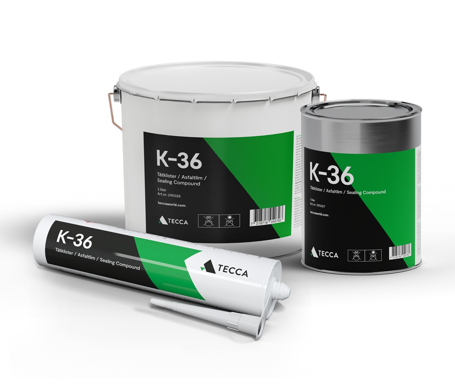 Detta gäller våra produkter Tätklister K-36, Täckmassa K-50, Kallasfalt K-70 och Primer K-80.