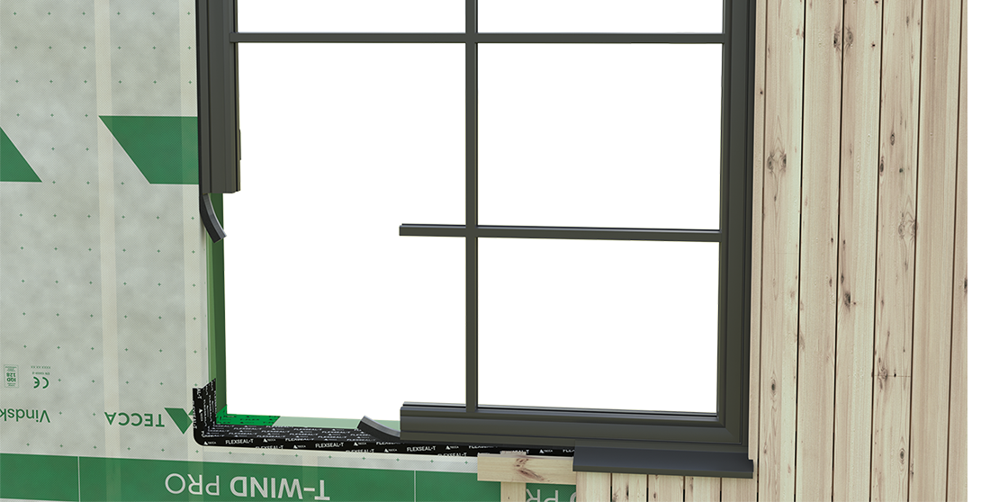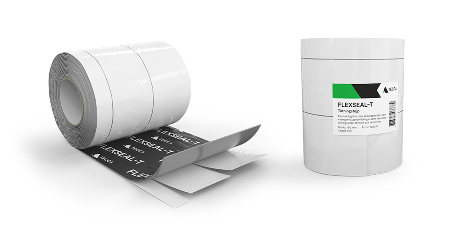 Flexseal-T används primärt som sekundärtätning under fönster/dörr och leder ut vatten som kan tränga in i konstruktionen. Den kan även användas till skarvar/anslutningar generellt i grund, golv och vägg. Tejpens häftämne består av butyl modifierat med akrylat och bäraren har en slät yta av polyeten. Tejpen har delad skyddsfolie (slitsad) för optimal tejpning i vinklar och dess elastiska egenskaper gör den enkel att montera i hörn.