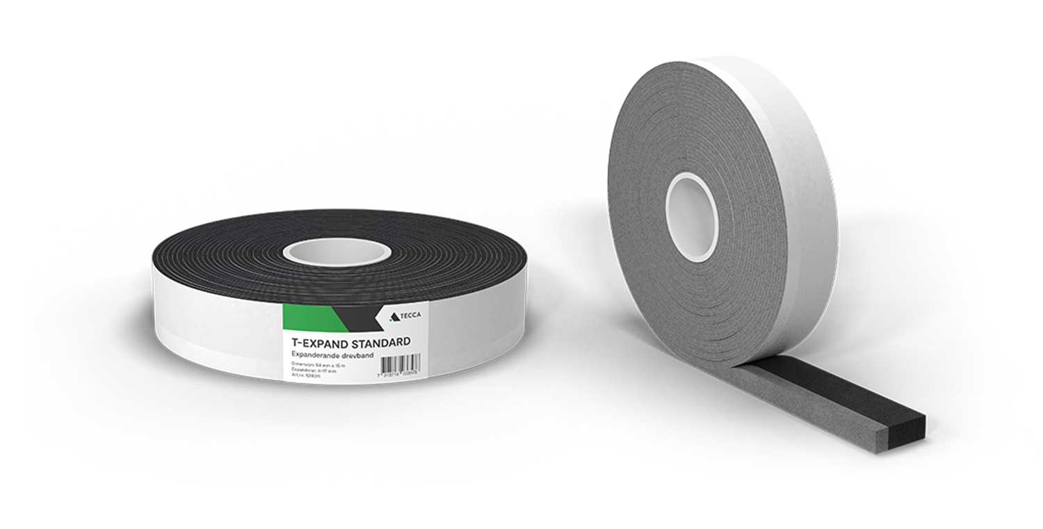 T-Expand Standard är ett expanderande drevband med barriärmembran. Produkten är främst avsedd för fogning och tätning vid nyinstallation av fönster och dörrar i isolerade konstruktioner. Drevbandet har diffusionströg insida, diffusionsöppen utsida, vattentät utsida, absolut lufttäthet, god termisk isolerförmåga och ljudisolering. Utvändig sida är diffusionsöppen men slagregnsskyddad och vattentät upp till 750 Pa.