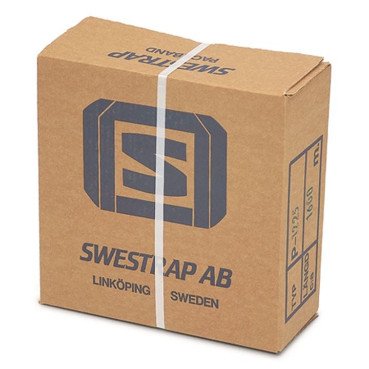 Band i polypropen för förslutning av wellådor och buntning av alla slags produkter genom manuell bandning.