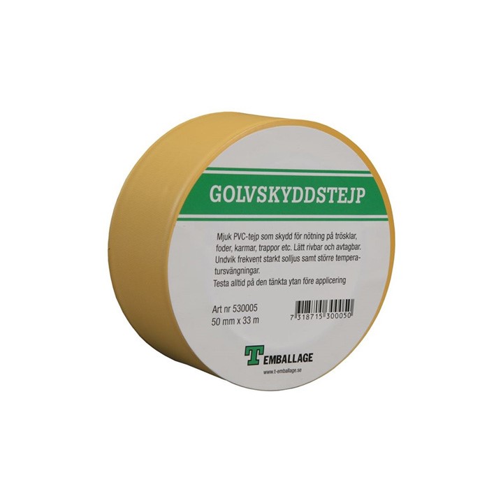 Golvskyddstejpen är en mjuk PVC-tejp med gummihäftämne. Den är lätt avrivbar och avtagbar med medium häftförmåga. Tål de flesta alkalier och syror. God åldringsbeständighet. Under normala förhållanden lämnar skyddstejpen inga häftämnesrester på underlaget efter avmaskering.