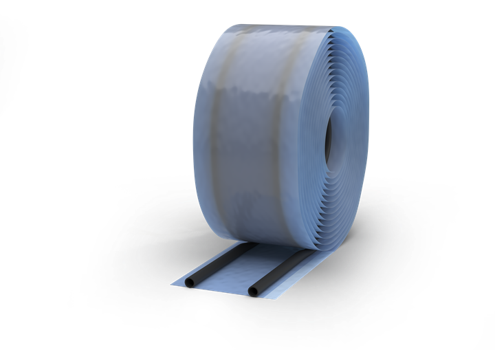 Åldringsbeständig polytetenfolie (0,20 mm) med 2 runda lister av EPDM gummi som kan tryckas ihop från 10 mm till 2 mm.